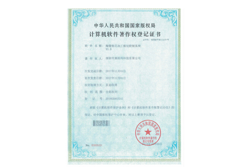 陶瓷軸芯加工模切控制系統(tǒng)證書